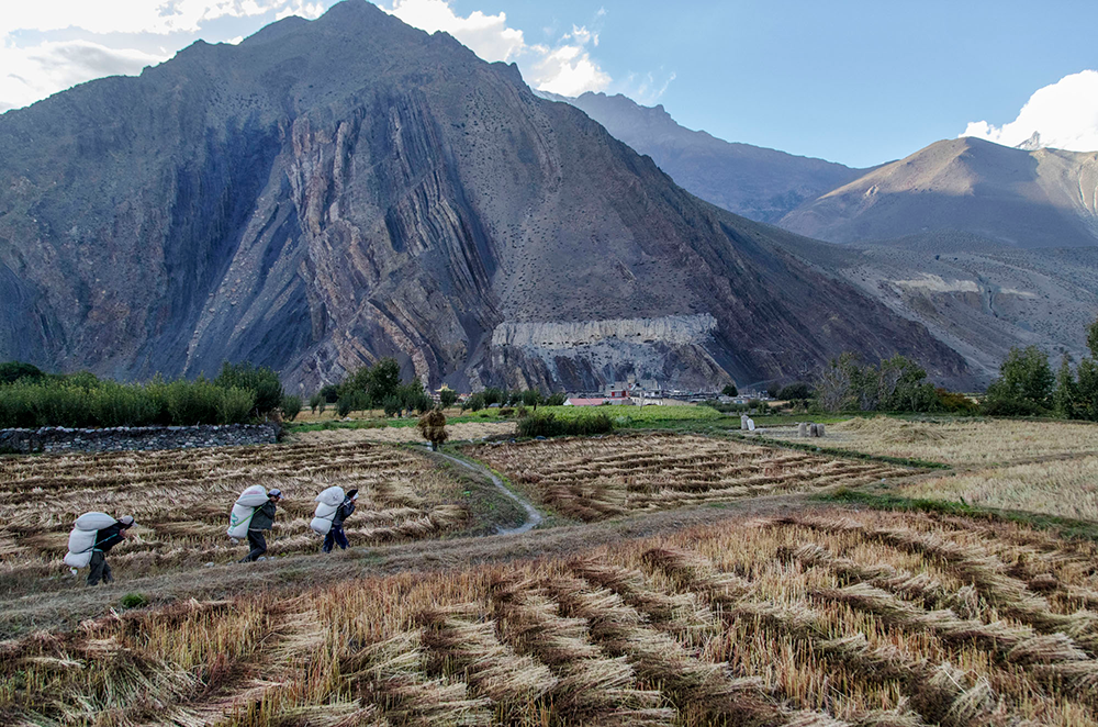 From here set out on the trail by following the Kali Gandaki River and passing the Thakali and Magar Villages to Dana (4750 ft. / 1446 m.) famous for its beautiful cascading waterfall. We continue to Tukche Village passing through other villages as Ghasa, Kalopani.