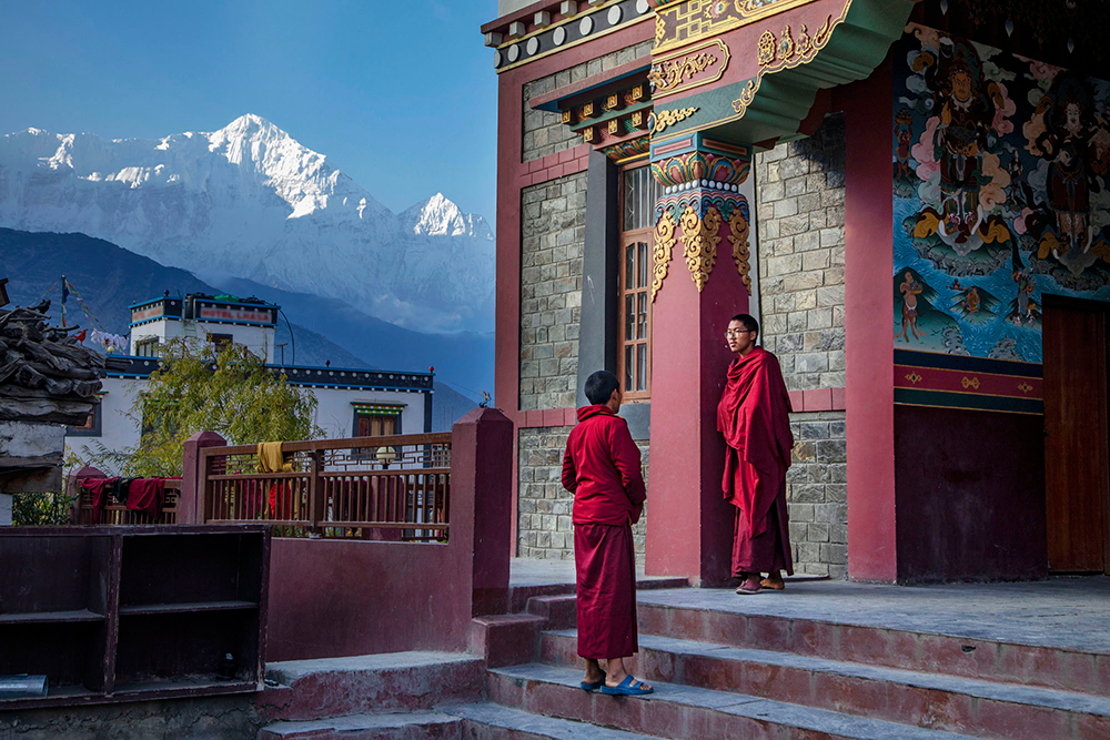 Kagbeni at an altitude of 2,840m / 9,315 ft. is a fascinating medieval village with closely packed mud brick houses, dark alleys and imposing chortens lies along the Around Annapurna Trekking route and is the gateway to Upper Mustang. The village stands in a little green oasis dominated by its red monastery. Though the village has a very medieval look, it can provide all the modern amenities that a traveler requires. This is the only village after Jomsom where there is an internet facility for communication with the outside world. This village also boasts of a Monastery. The monks here are of the yellow hat or the Gelukpa Sect and have only recently opened their monastery to visitors with a legitimate entrance fee of Rs. 100, which they collect for the maintenance of their school.